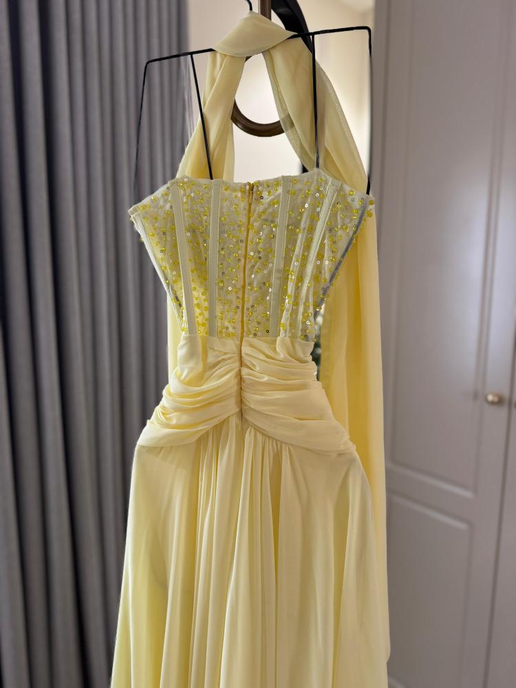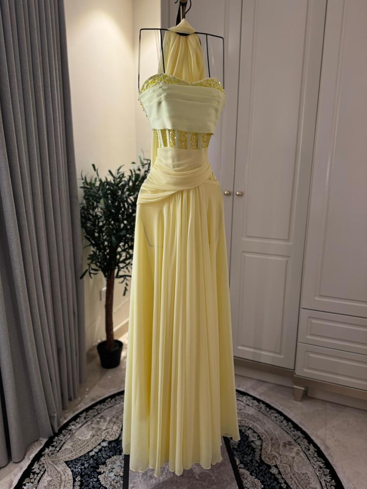 فستان شيفون اصفر