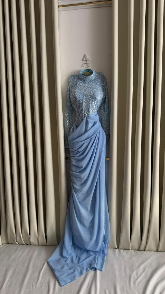 فستان سماوي ماسك مطرز