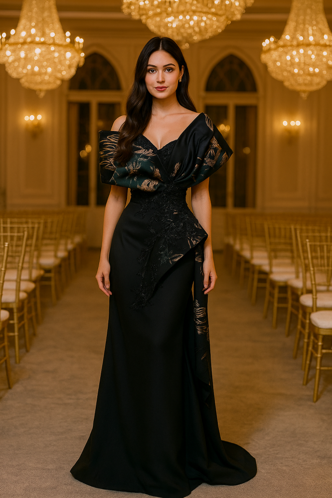 فستان اسود فخم مطرز