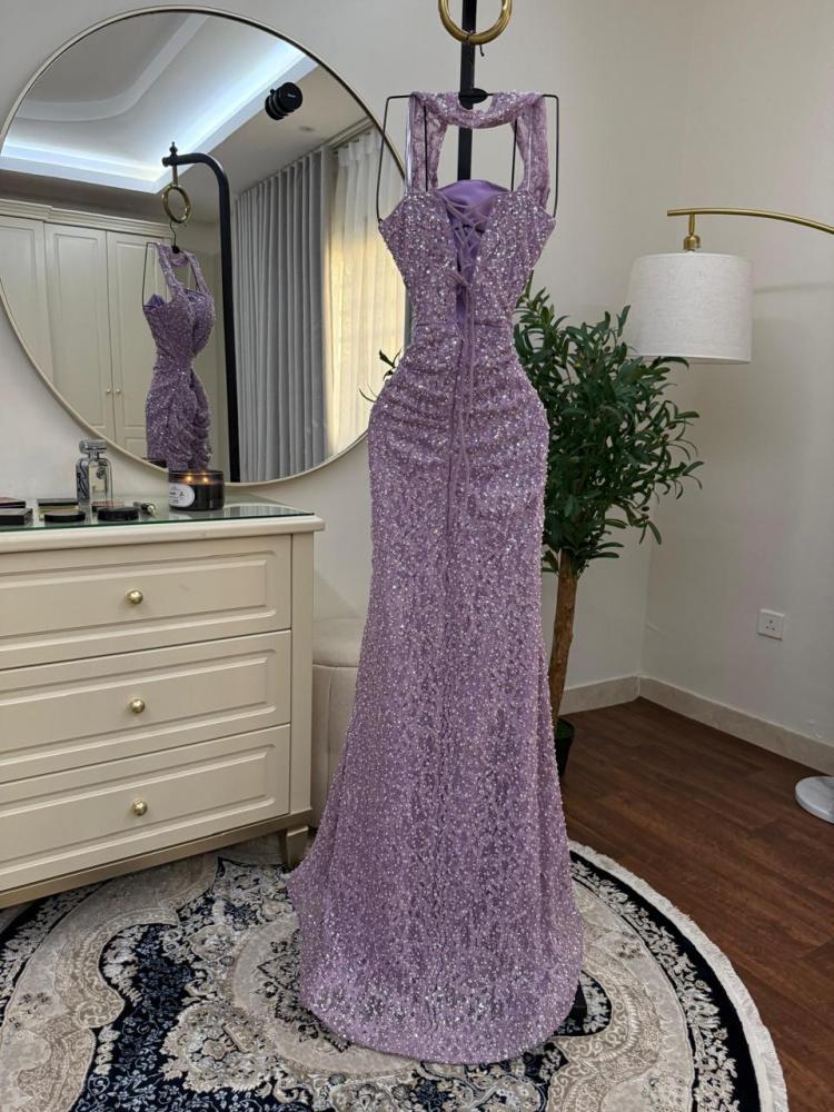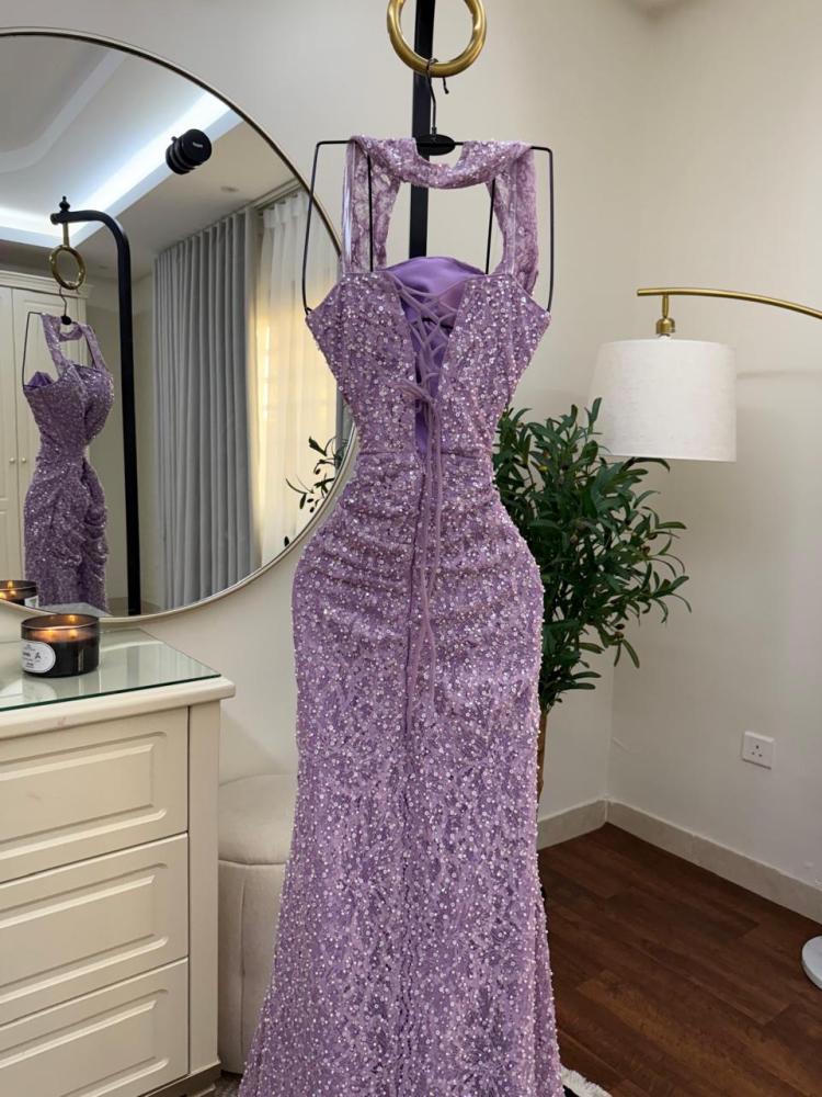 فستان موف مطرز