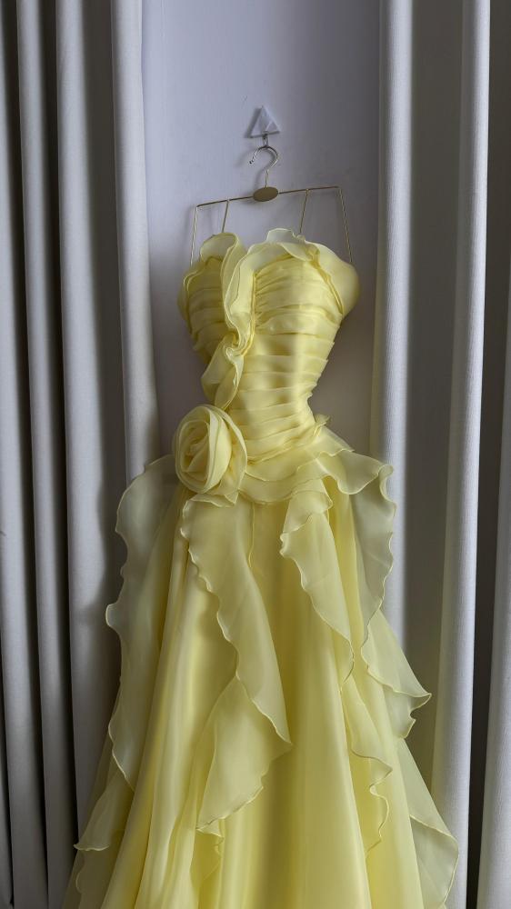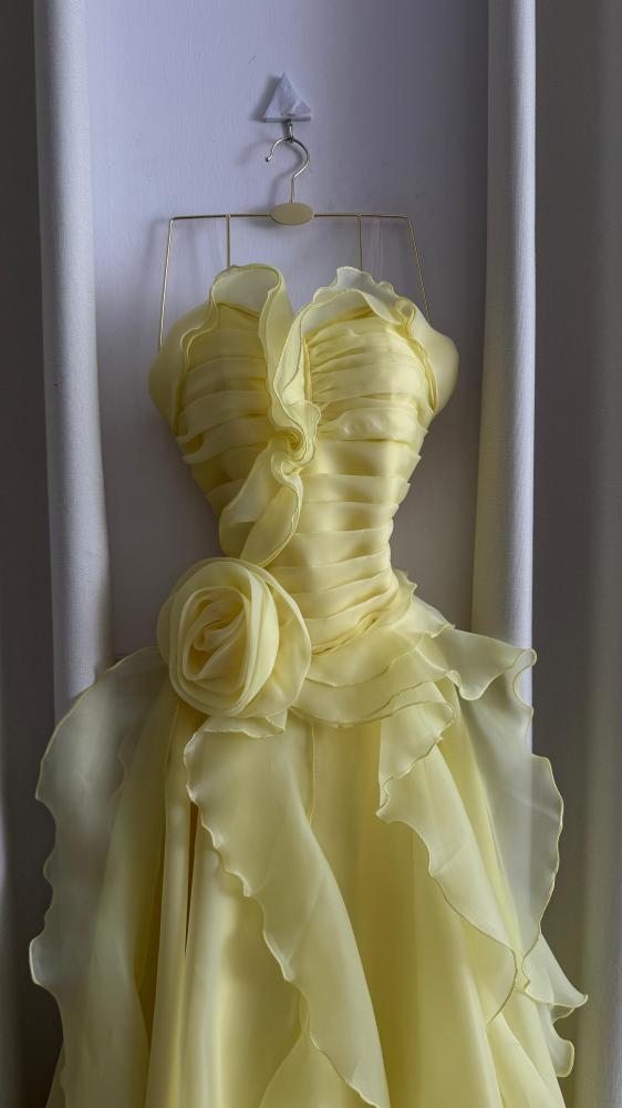 فستان اصفر منفوش