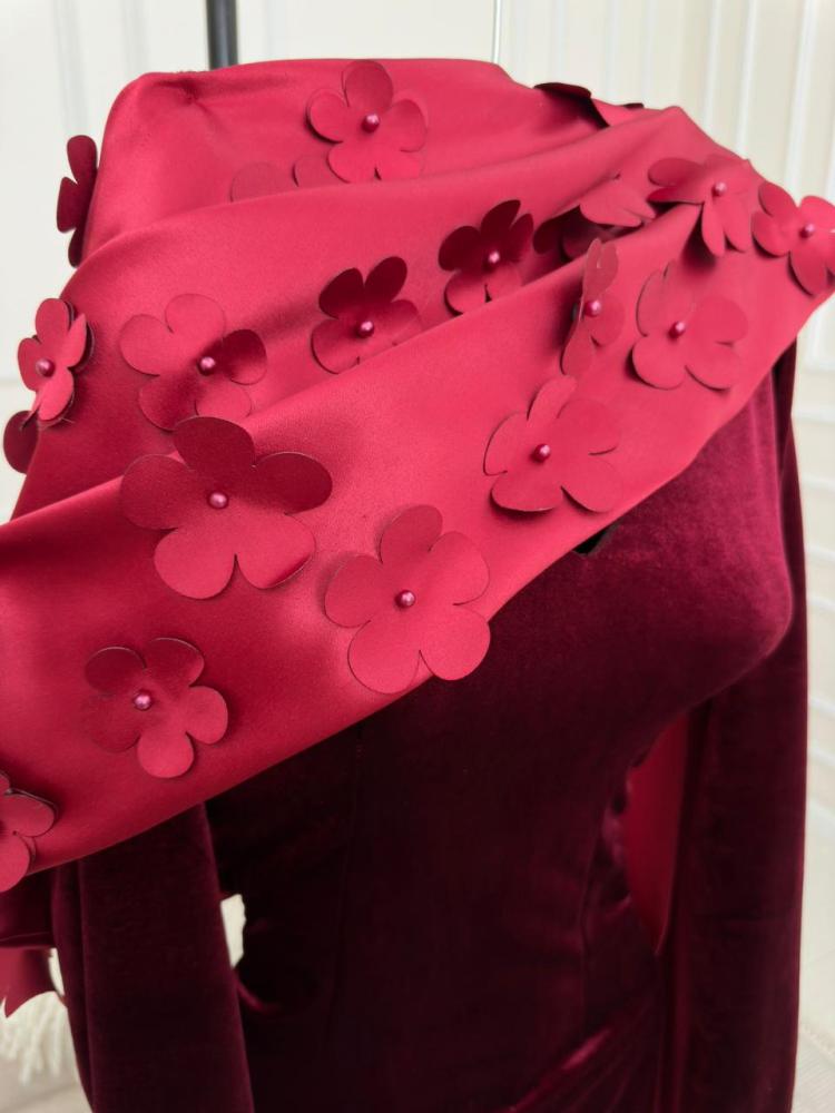 فستان عنابي مخمل